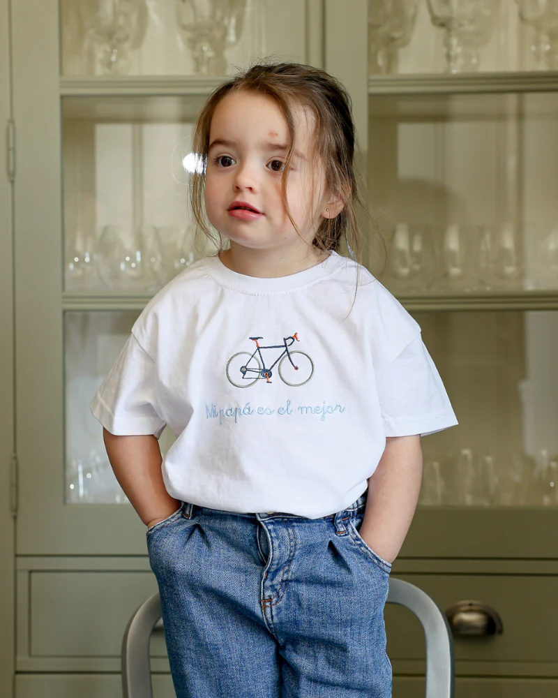 - La camiseta lleva bordado de una bici. Personalízala con una frase bordada, un nombre, unas iniciales...